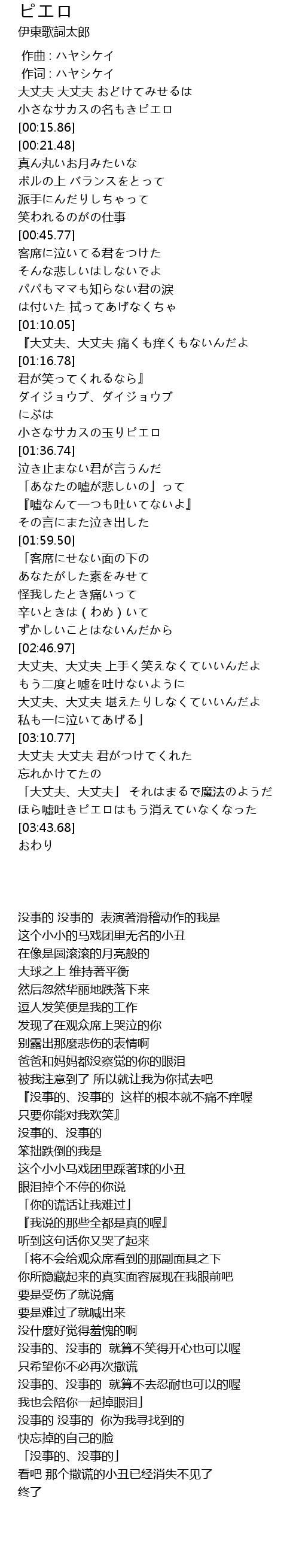 | [03:30.35] | ほら嘘吐きピエロはもう消えていなくなった |