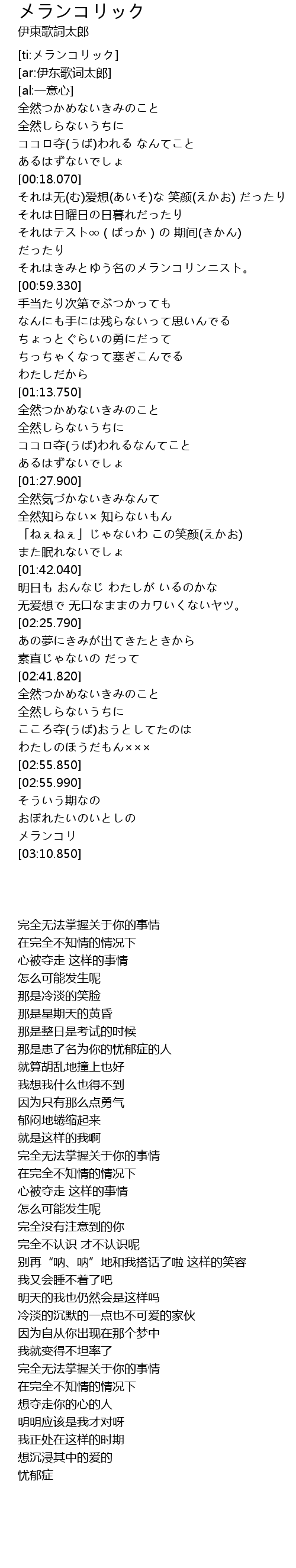 | [00:51.520] | それはきみとゆう名のメランコリンニスト。 |