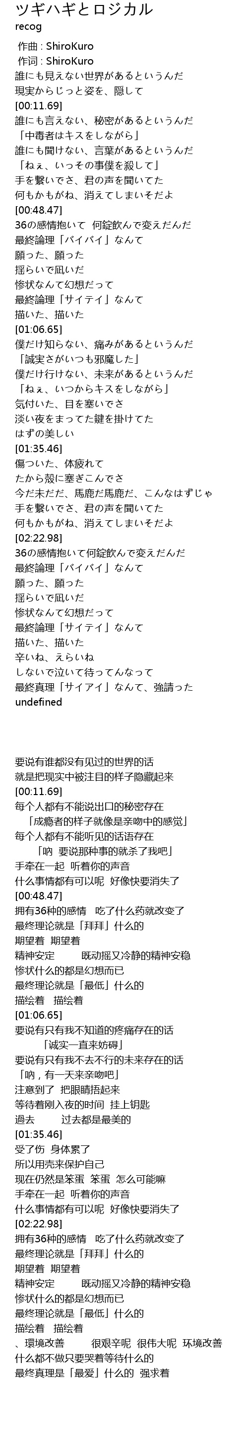 | [00:00.00] | zuò qǔ : ShiroKuro |