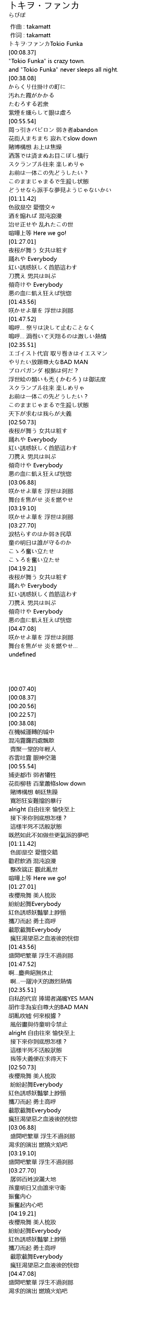 | [00:07.40] | トキヲ·ファンカTokio Funka |