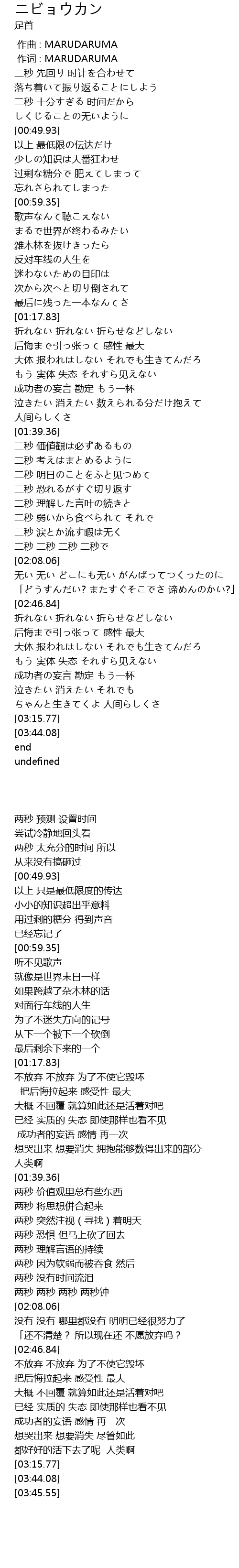 | [00:01.00] | 作词 : MARUDARUMA |