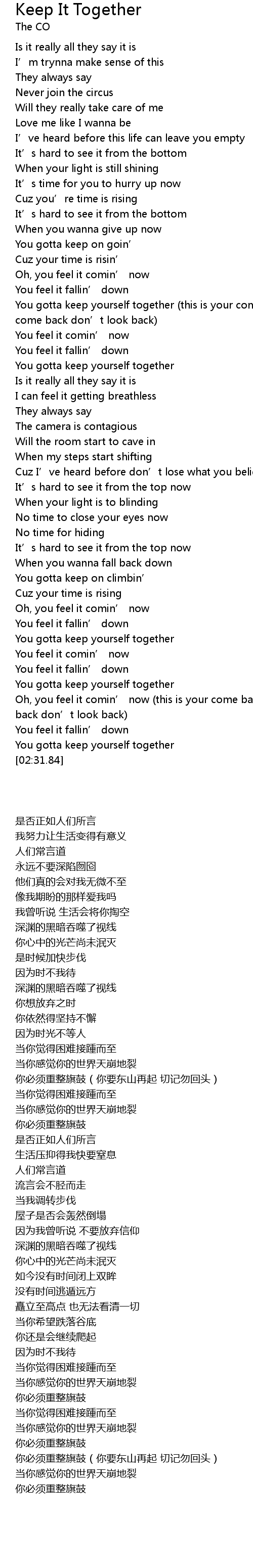 | [02:23.73] | You gotta keep yourself together |