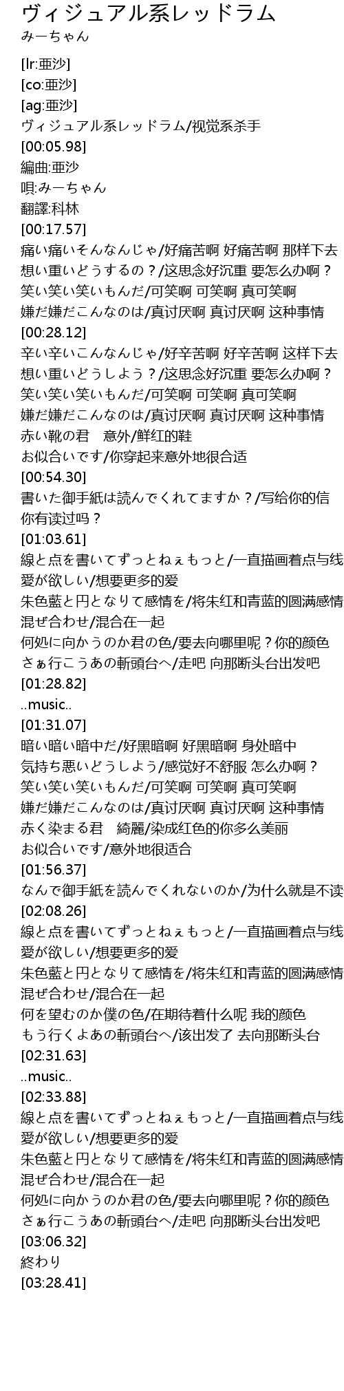 | [00:00.74] | ヴィジュアル系レッドラム/视觉系杀手 |