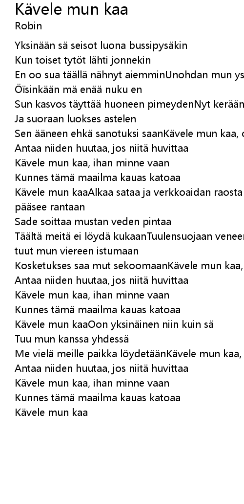 | Kävele mun kaaOon yksinäinen niin kuin sä | |