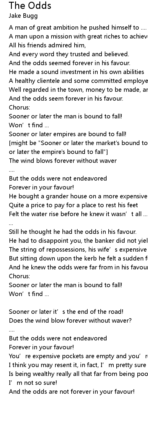 | [might be "Sooner or later the market's bound to fall. One fine day Sir] | |