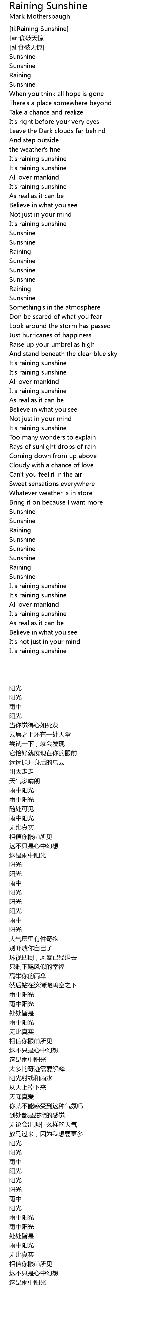 | [ti:Raining Sunshine] | |