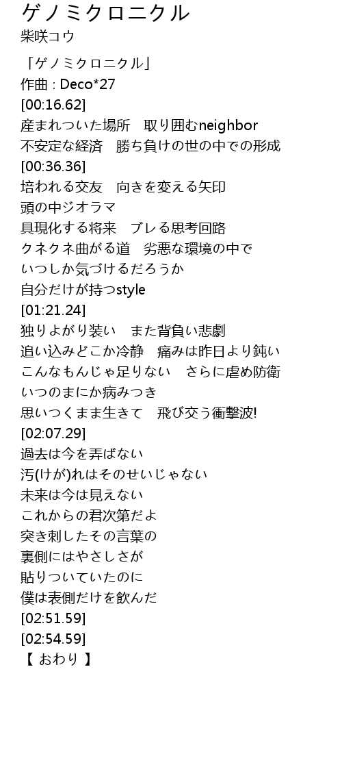 | [00:01.62] | 「ゲノミクロニクル」 |