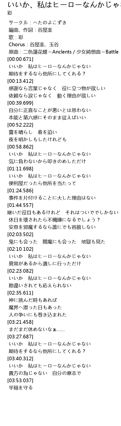 | [02:23.377] | いいか 私はヒーローなんかじゃない |