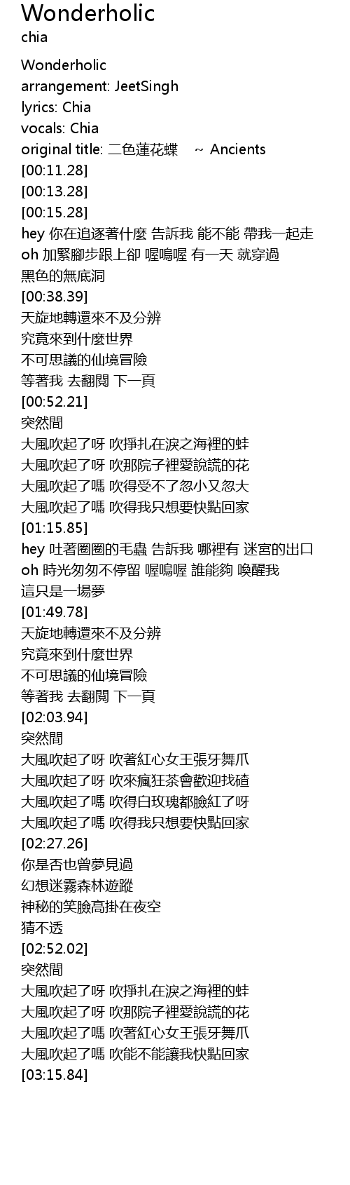| [02:10.13] | 大風吹起了呀 吹來瘋狂茶會歡迎找碴 |