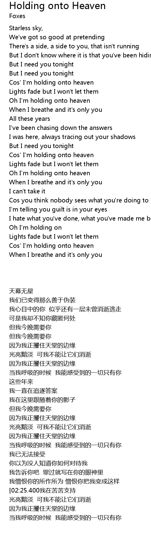 | [02:40.400] | Cos' I'm holding onto heaven |