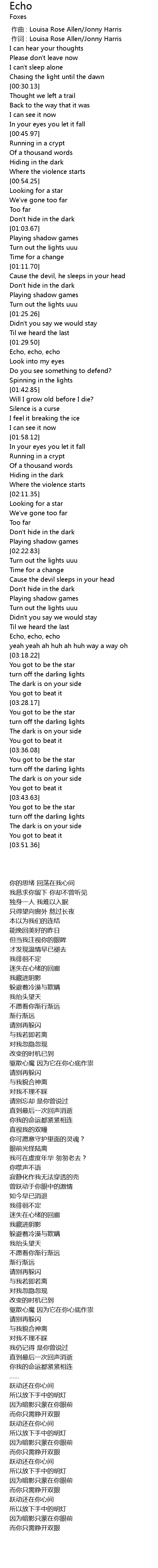 | [00:01.00] | 作词 : Louisa Rose Allen/Jonny Harris |