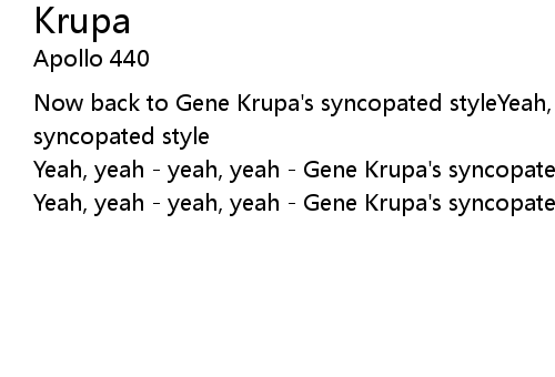 | Now back to Gene Krupa's syncopated styleYeah, yeah - yeah, yeah - Gene Krupa's syncopated style | |