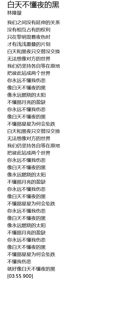 | [03:44.910] | 就好像白天不懂夜的黑 |