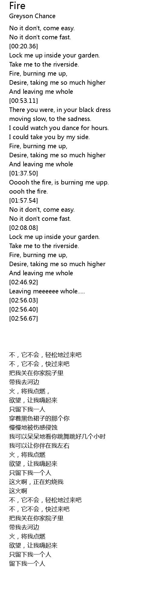 Ooooh the fire, is burning me upp. |