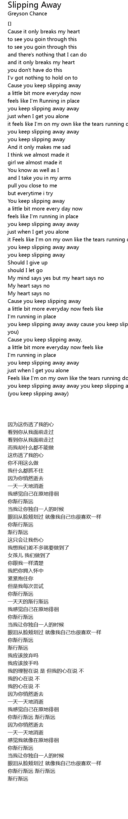 | [02:15.928] | you keep slipping away away cause you keep slipping Away (oooh you you) |