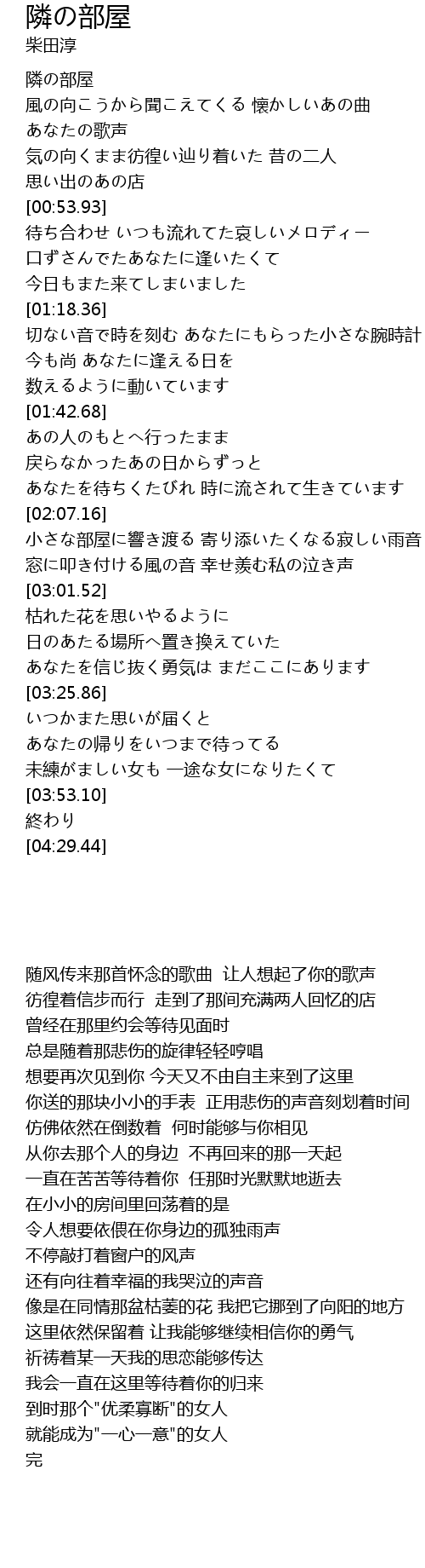 | [01:43.31] | あの人のもとへ行ったまま 戻らなかったあの日からずっと |
