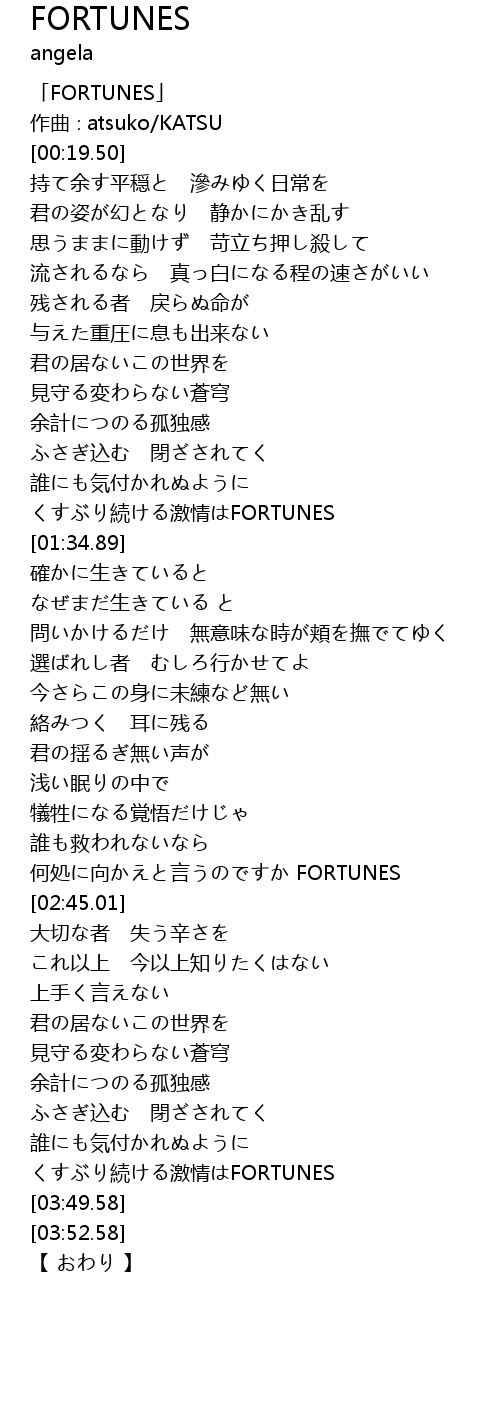 | [00:01.50] | 「FORTUNES」 |