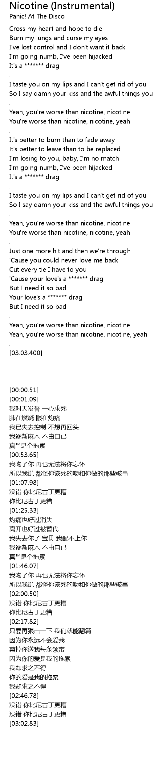 [02:08.610] You're worse than nicotine, nicotine, yeah