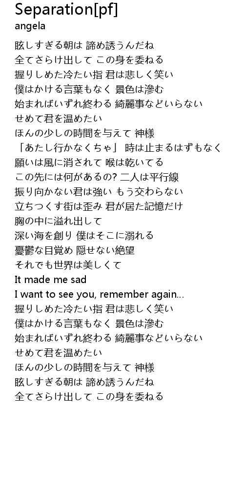 | Song | Separation[pf] |