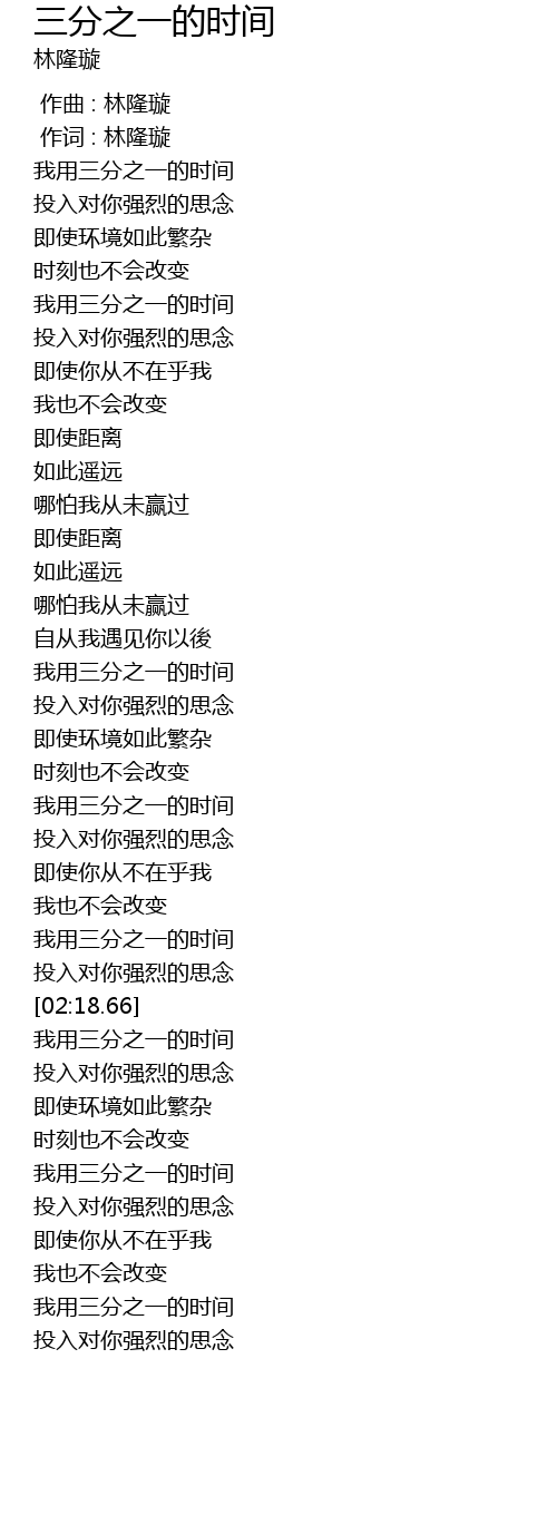 | [02:50.65] | wǒ yòng sān fēn zhī yī de shí jiān |