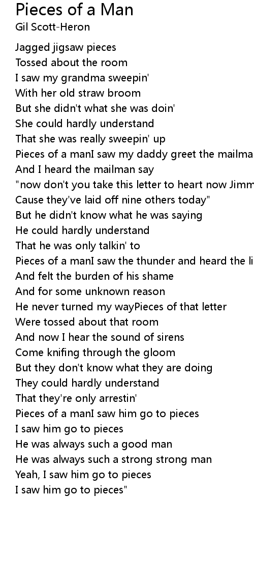 Pieces of a manI saw the thunder and heard the lightnin'! |