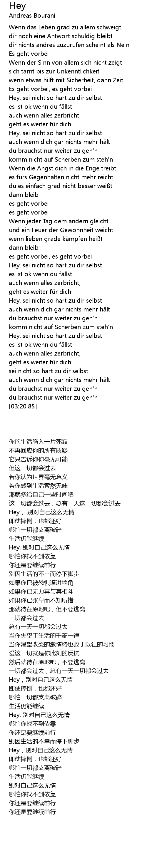 | [00:44.37] | Hey, sei nicht so hart zu dir selbst |