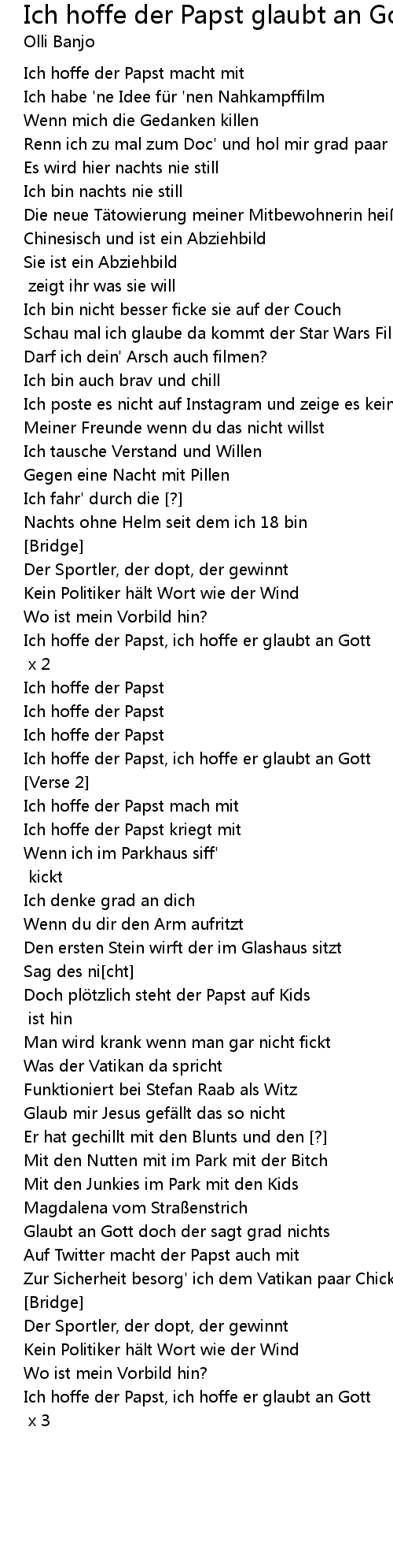 | Song | Ich hoffe der Papst glaubt an Gott |