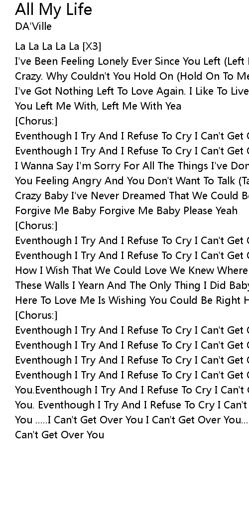 Eventhough I Try And I Refuse To Cry I Can't Get Over You I Can't Get Over You. Eventhough I Try And I Refuse To Cry I Can't Get Over You I Can't Get Over You. |