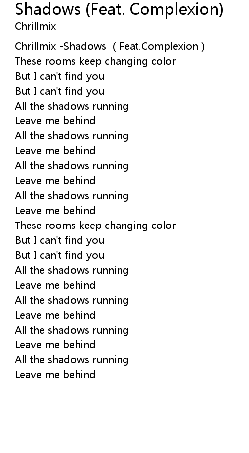 | [00:00.73] | Chrillmix Shadows Feat. Complexion |