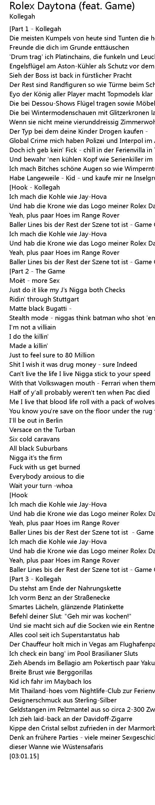 | [02:10.14] | Und hab die Krone wie das Logo meiner Rolex Daytona |
