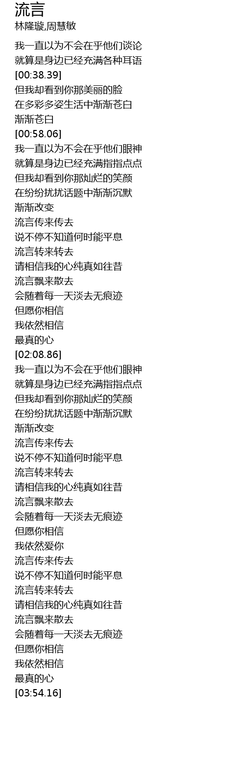 | [03:14.31] | liú yán chuán lái chuán qù |