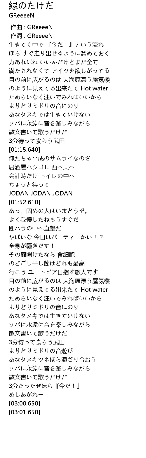 | [00:01.00] | zuo ci : GReeeeN |