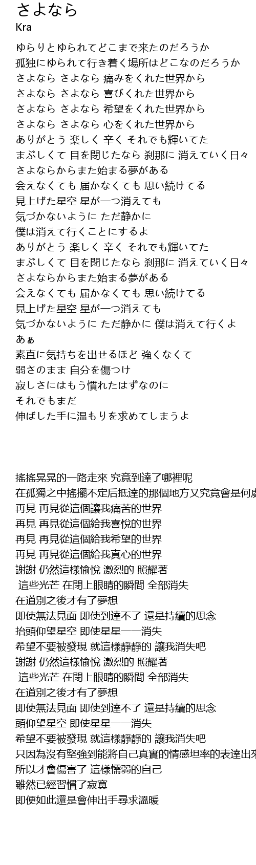 | [00:42.640] | さよなら さよなら 喜びくれた世界から |