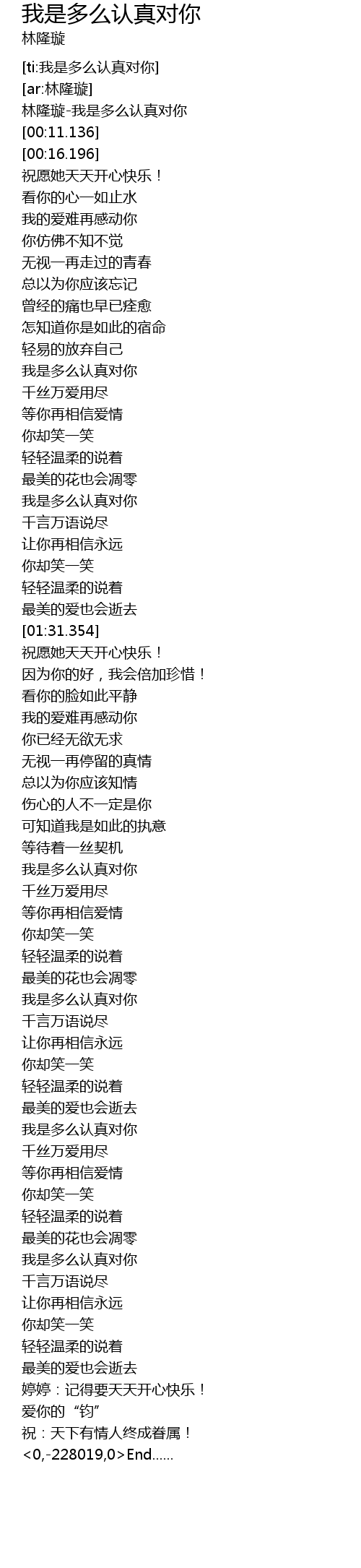 | [00:00.976] | 林隆璇-我是多么认真对你 |