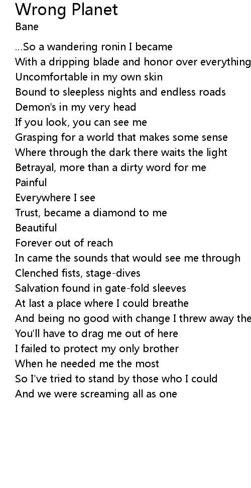 | Song | Wrong Planet |