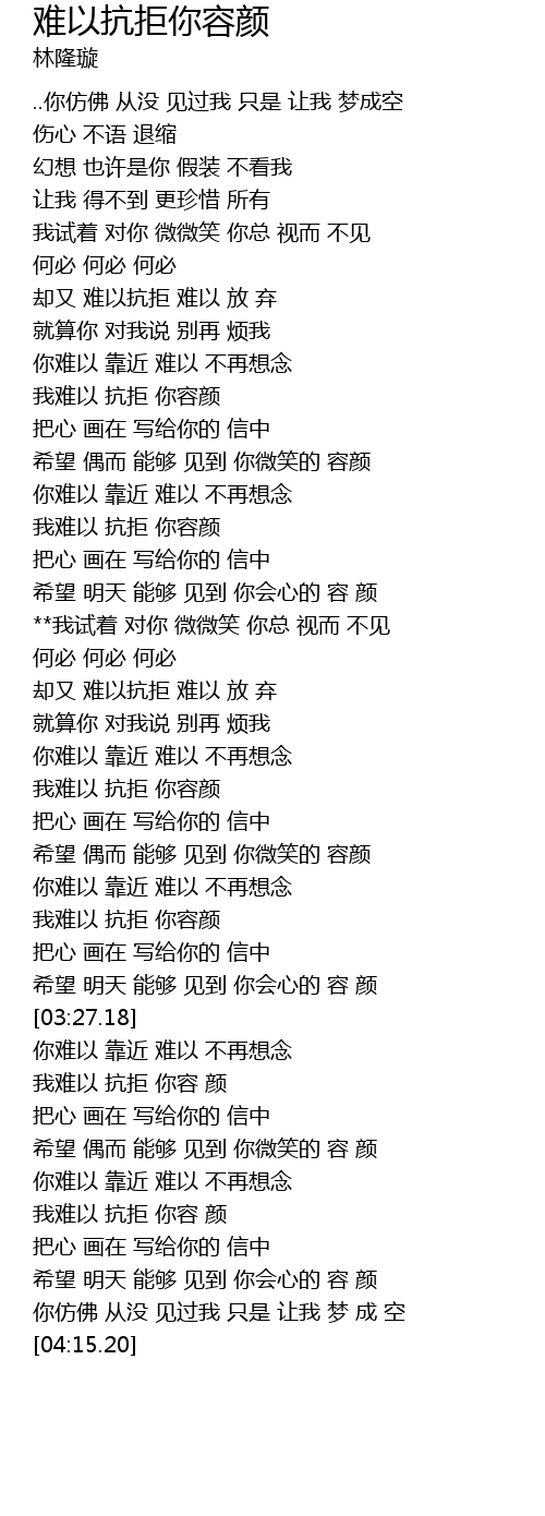 | [03:47.73] | 我难以 抗拒 你容 颜 |