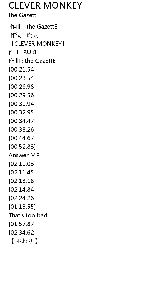 | [00:01.54] | 「CLEVER MONKEY」 |