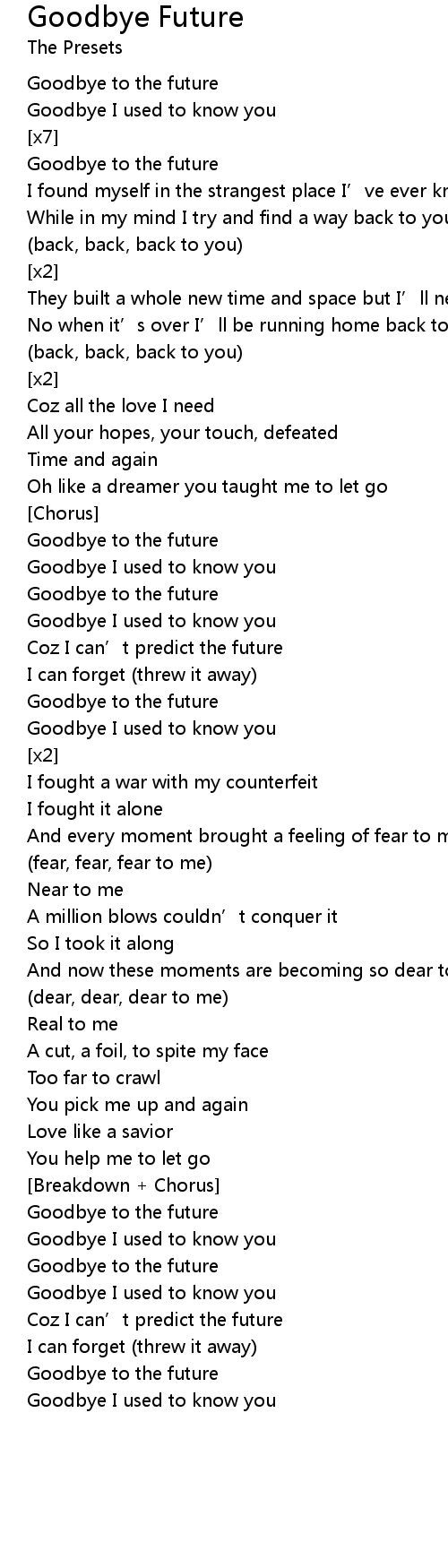 | Goodbye I used to know you |