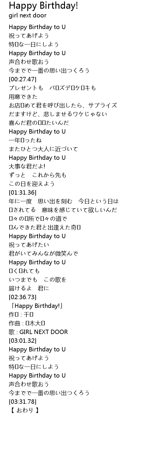 | [00:35.87] | プレゼントも バ�ズデ�ケ�キも |