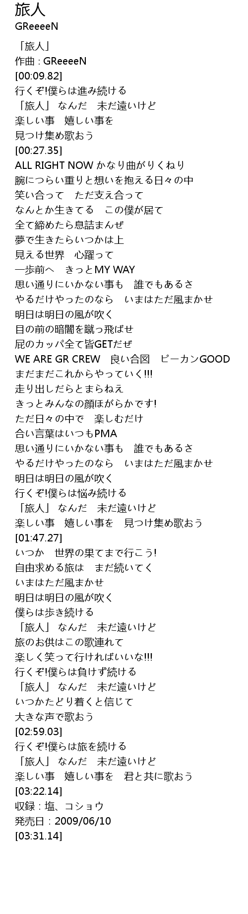 | [01:04.07] | WE ARE GR CREW 良い合図 ピーカンGOOD |