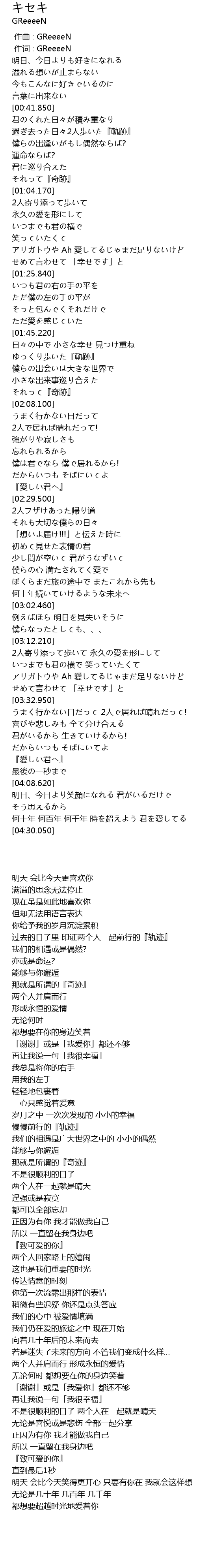 | [04:18.830] | 何十年 何百年 何千年 時を超えよう 君を愛してる |