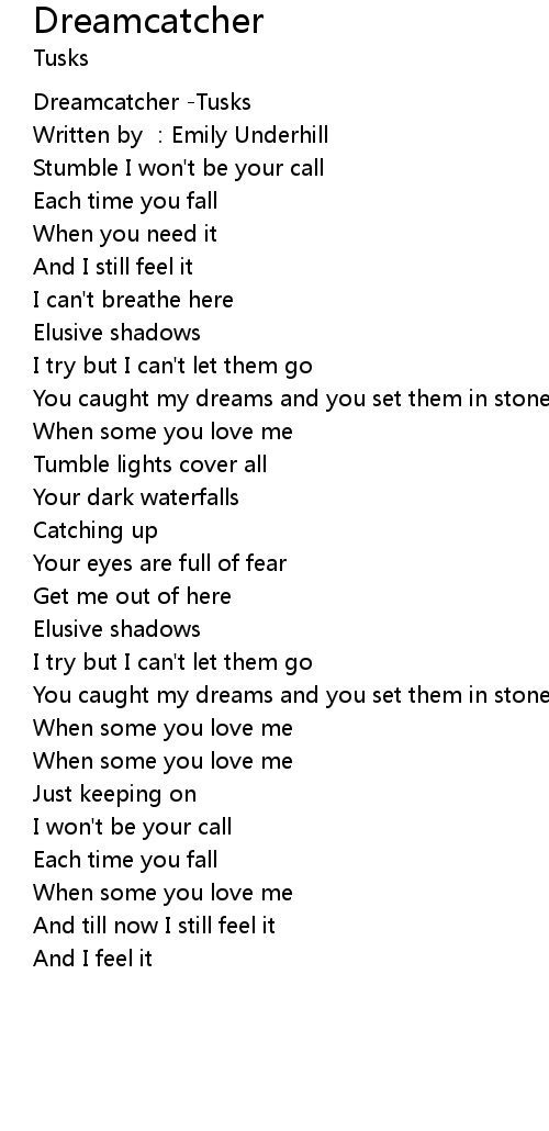 | [01:07.822] | You caught my dreams and you set them in stone |