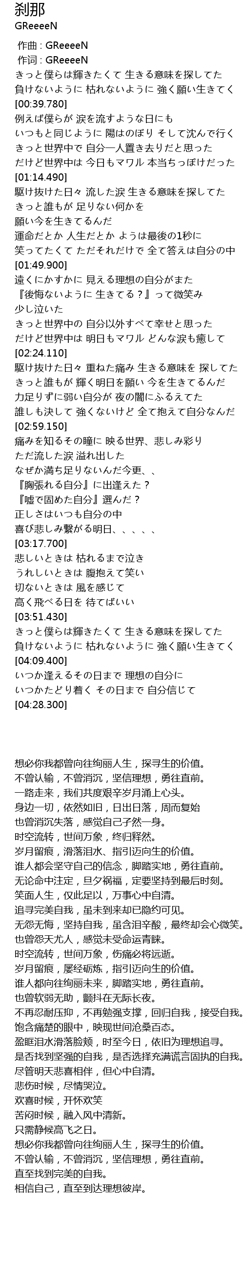 | [00:01.00] | zuò cí : GReeeeN |
