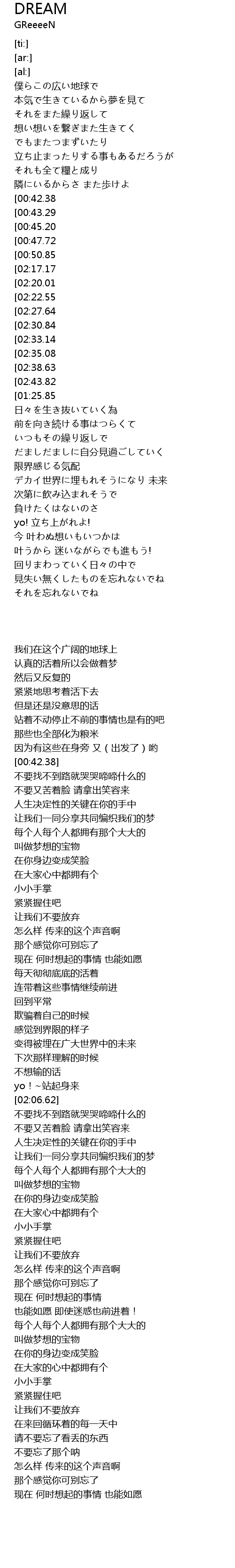 | [03:23.69][02:17.17][00:53.18] | yī rén yī rén chí dà |
