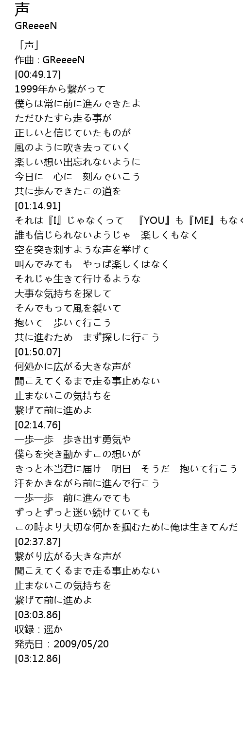 | [02:44.66] | 聞こえてくるまで走る事止めない |