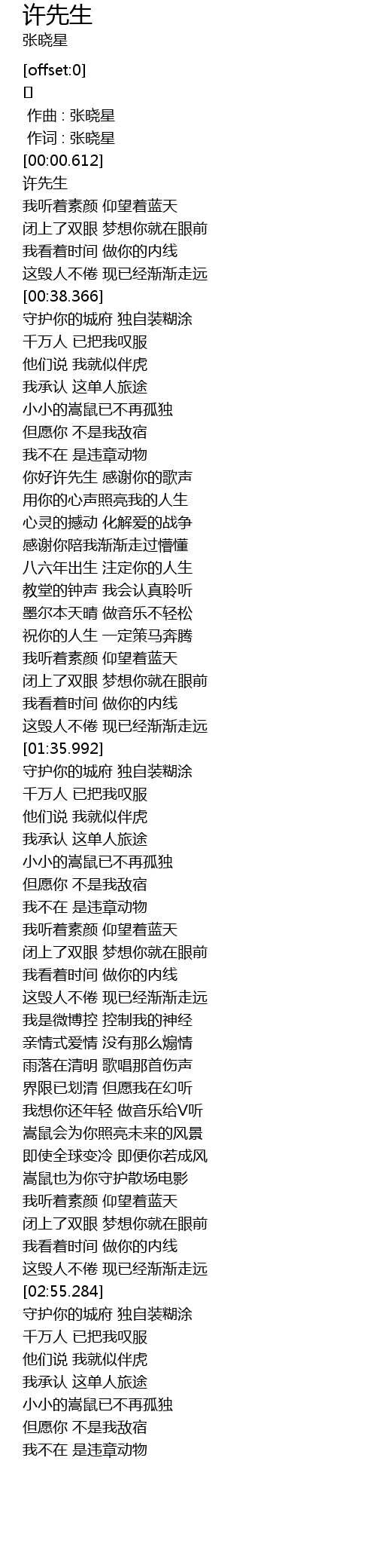 | [00:57.676] | 你好许先生 感谢你的歌声 |