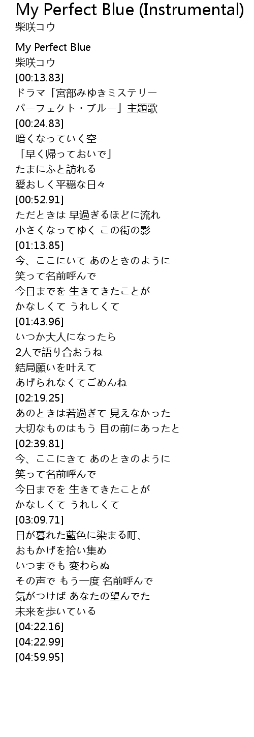 | [00:20.43] | パーフェクト・ブルー」主題歌 |