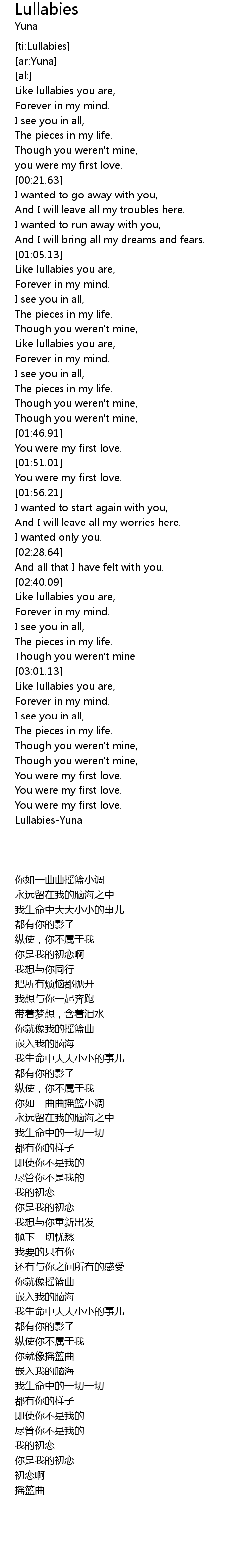 | [03:49.82] | Lullabies-Yuna |
