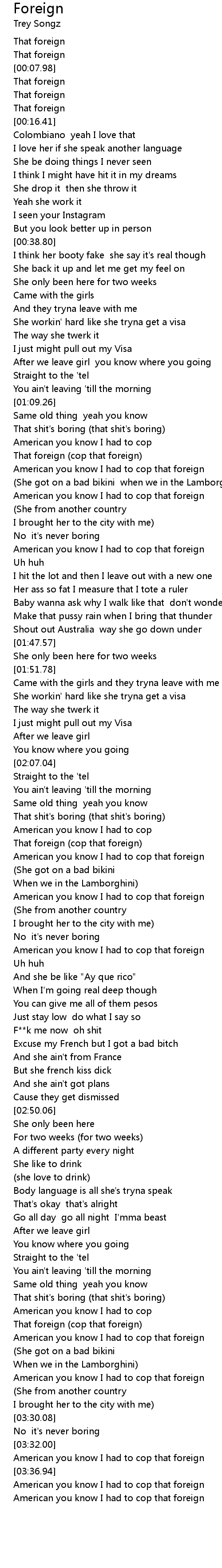 American you know I had to cop that foreign |