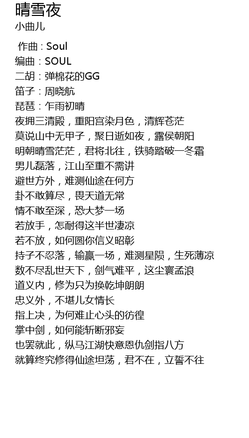 | [00:57.879] | 明朝晴雪茫茫,君将北往,铁骑踏破一冬霜 |